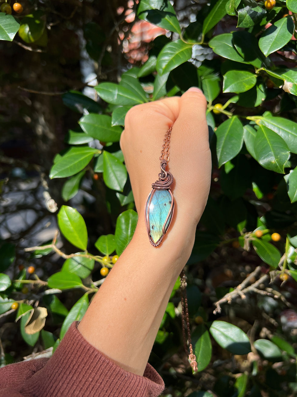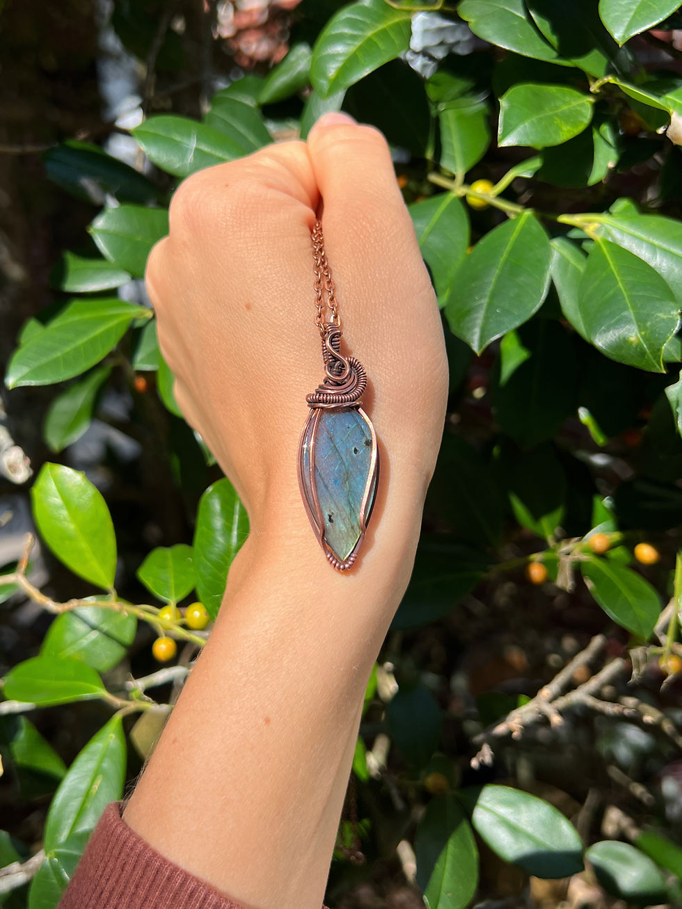 One of a kind pendant crafted by Island Soul Designs. This piece is made with antiqued copper wire and comes with a copper chain, polishing cloth, and care instructions!